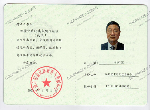 智能化系統(tǒng)集成高級項(xiàng)目經(jīng)理證書