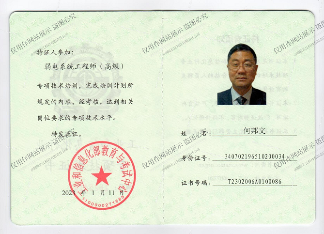 弱電系統(tǒng)高級工程師證書